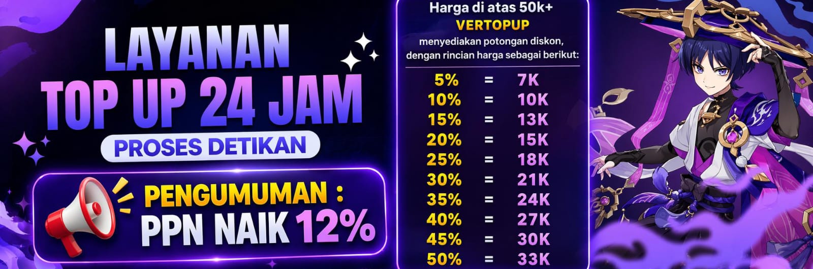 VERTOPUP hadir sebagai solusi layanan top up game dan kebutuhan digital yang mengutamakan kecepatan, kemudahan, serta kenyamanan bagi setiap pengguna. Kami memahami bahwa dalam dunia digital saat ini, efisiensi dan keakuratan merupakan hal yang sangat penting, sehingga kami merancang sistem yang mampu memproses transaksi secara cepat, stabil, dan minim kendala.